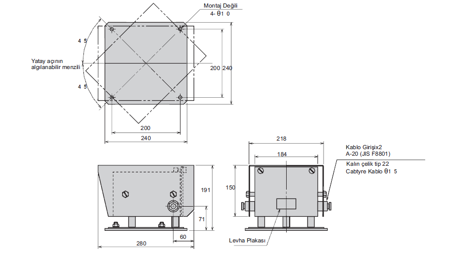 20° lik açıyla kurulduğunda 0-20 m (önerilen) / 45° lik açıyla kurulduğunda 10-40 m (max)