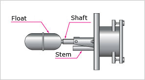 The shaft has a magnet at the end and the stem has a reed switch. The reed switch opens or closes to indicate liquid presence as the liquid surface rises or falls.