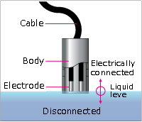 Sensör bir röle ünitesiyle birlikte çalışır.Elektrotlar arasında iletken sıvı olmadan, akım akmaz. Elektrotlar arasında iletken sıvı ile akım akar.Röle, akımın varlığına veya yokluğuna bağlı olarak kontaklarını açar veya kapatır. Röle ünitesi RE7000 küçük alternatif akım sağlar, böylece sensör erozyon olmadan uzun servis ömrü sunar.