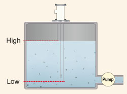 Bir amplifikatörle (ticari olarak temin edilebilir ürün) birlikte kullanıldığında, iletken bir sıvının sıvı seviyesi, elektrotlar arasında bir dakika akım uygulanıp uygulanmamasına bağlı olarak tespit edilebilir.