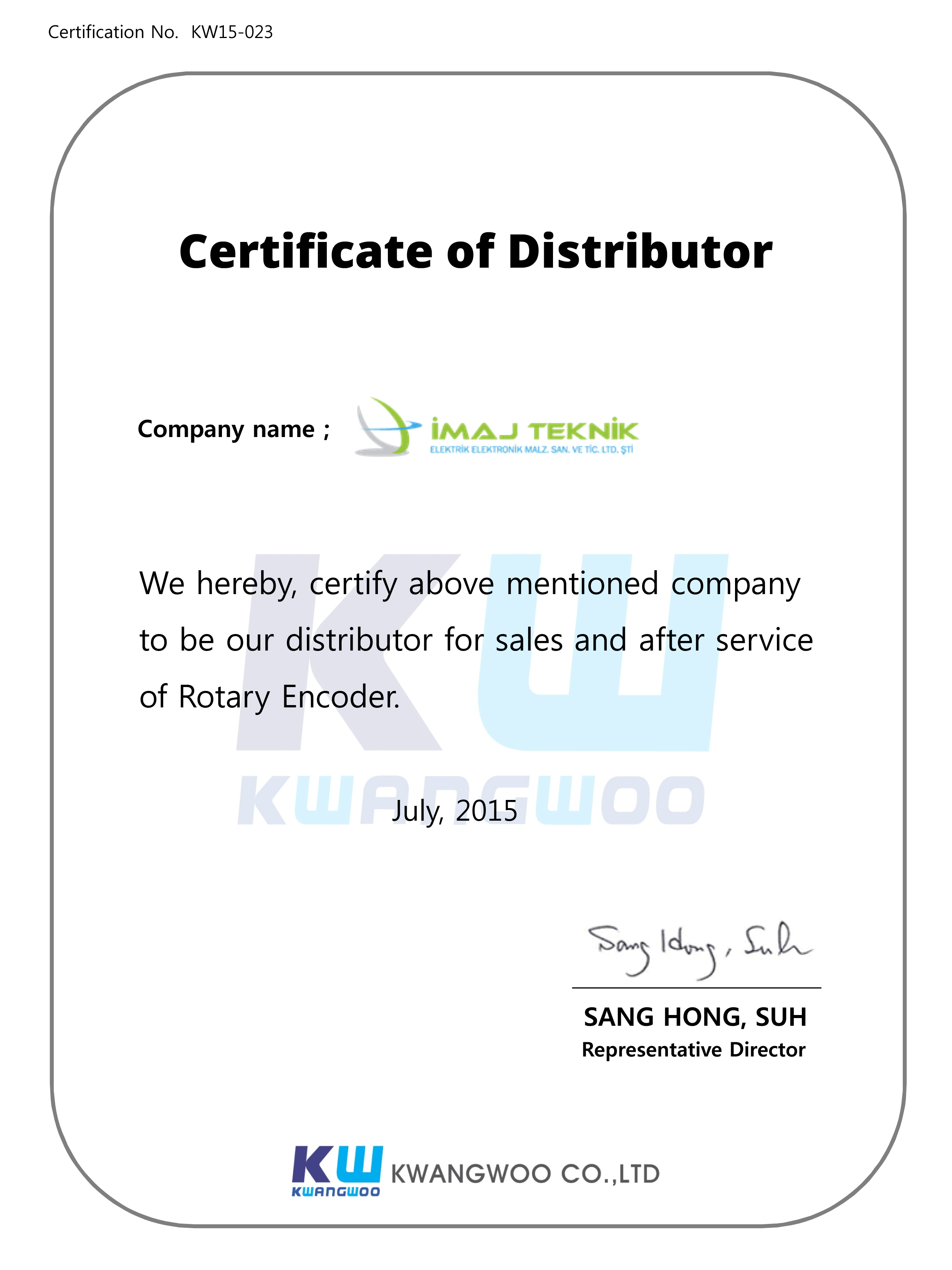 Kwangwo, since its inception in November 1992, over the last 20 years, Kwangwoo targets to ensure the quality and flawless production of encoder products and to sell them to the world with successful distributors. We undertake the Turkey distributor Technically image.