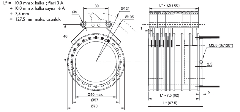 Halka Sayısı : Sinyal iletimi için maksimum 24 halka ve güç iletimi için maksimum 12 halka.