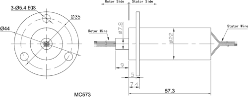 MC573 slip ringler küçük ve kompakt yapıda 22mm dış çaplı 57.3mm uzunlukta, kapsül tipli, standart, satışa hazır slip ringler olup, basitleştirilmiş elektrik bağlantıları için renk kodlu ana kablolar statorda ve rotorda kullanılır. Her bir iletken için 90° V-kanal iletken tasarımı kullanılır.