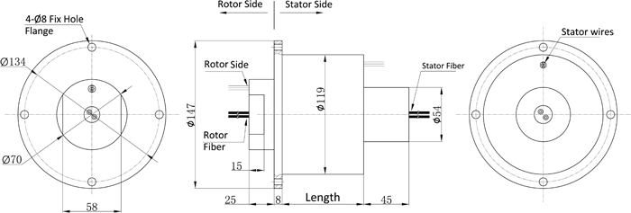 MFO208 is 2 channel FORJ mixed with electric wires, max 72 wires, are standard,ready available slip ring solution.