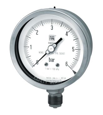 These instruments are designed for petrochemical industry. They are built to resist to the most severe conditions created by H2S, by the environment and for those fluids, which have high viscosity and do not crystallize. The quality of the materials used to build the sensible element allows their use with high frequency pulsating pressures. The TIG welding between the case and the process socket, strengthens the instrument and assures a better tight in case of dampening fluid. The advantages of filling the case of the instrument with a dampening fluid are: reduced pointer fluctuation, reduced wear of rotating parts of the movement when pulsant vibrations and pulsations occur. Moreover condensation and corrosive atmospheres which could damage the internal