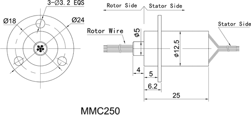 MMC250 slip ring'ler küçük ve kompakt 12.5mm dış çaplı * 25mm uzunluk, standart, satışa hazır slip ringlerdir.