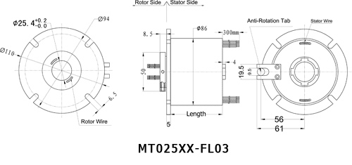 MT025 serisi standart, satışa hazır ürünler olup, basitleştirilmiş elektrik bağlantıları için renk kodlu ana kablolar, statorda ve rotorda kullanılır. Hidrolik veya pnömatik hatların yönlendirilmesi, hidrolik veya pnömatik döner şaft kurulumu için 25.4mm(1") iç çap ve kompakt 86mm dış çap sağlanmıştır. Uzun ömürlü ve birçok zorlu uygulamada en üst düzey performans için fiber fırça kontak teknolojisine sahiptir.