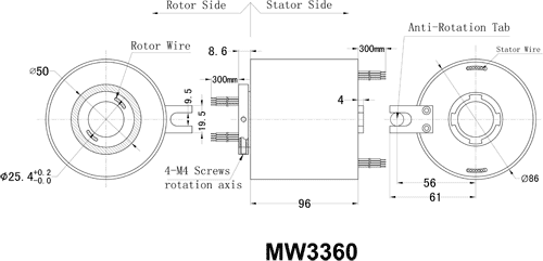 MW3360 slip ring'ler küçük kompakt ve 3 kanallı * 60A - Delik Ölçüleri 25.4mm(1") ve Dış Çap 86mm özellikte olup, standart, satışa hazır durumdadırlar.