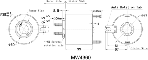 MW4360 slip ring'ler küçük kompakt ve 3 kanallı * 60A - Delik Ölçüleri 38.1mm(1.5")) ve Dış Çap 99mm özellikte olup, standart, satışa hazır durumdadırlar.