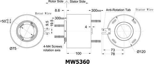 MW5360 slip ring'ler küçük kompakt ve 3 kanallı * 60A - Delik Ölçüleri 50mm(1.97") ve Dış Çap 120mm özellikte olup, standart, satışa hazır durumdadırlar.