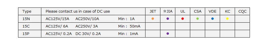 | Resistance between Terminals | 15P :Less than 10mΩ(Initial value) 15N・15C :Less than 30mΩ (Initial value) |