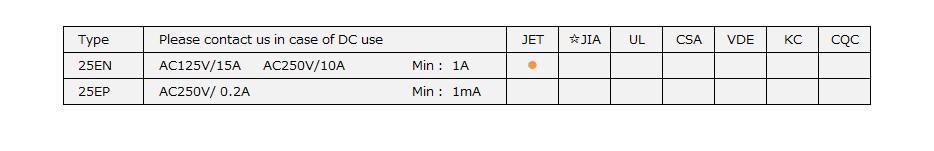 | Resistance between Terminals | 25EP :Less than 10mΩ(Initial value) 25EN :Less than 30mΩ (Initial value) |