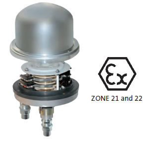 EXD sliprings are ATEX approved for Zone 21 and 22, and they are IP65; compact and modular, they are particularly required in dusted areas subject to a high explosion risk.