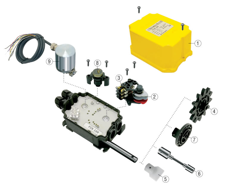 FCN Serisi Tur Switch , tek üründe hızlı (snap) etkili ve/veya yavaş (slow) açmalı 5 mikro-switch ve aynı eksen üzerinde potansiyometre ilave edilebilen özel bir tararıma sahiptir. Kamların yenilikçi ve mükemmel dizaynı ile mikro-switchlerin çalışma noktalarını mikrometrik olarak ayarlamanızı sağlar.