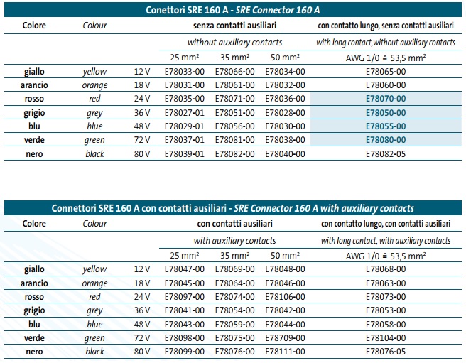 | Connettori SRE 160 A con contatti ausiliari – SRE Konnektör 160 A yardımcı kontaklı |