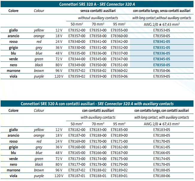 Connettori SRE 320 A con contatti ausiliari - SRE Connector 320 A with auxiliary contacts