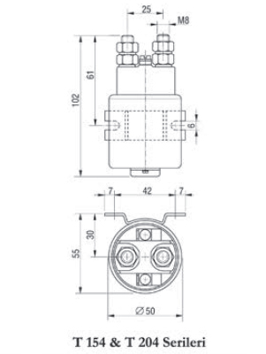 T 154, T 204 Tek Kutuplu DC Kontaktör Teknik Özellikleri