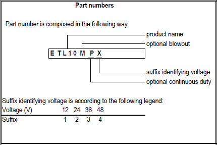 TL10 and TL11 contactors featuring permanent magnets are recommended for voltage > 36 V d.c.