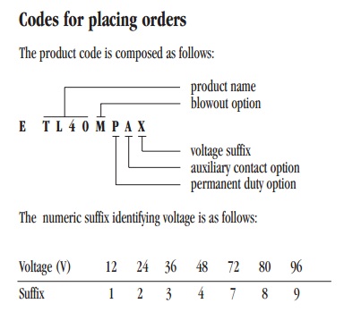 The suffix A is to be added to these codes when the mounted auxiliary contact is required.