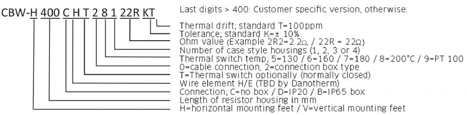 CBW dirençleri, sıvı soğutma kanalları entegre edilmiş bir alüminyum gövdeden oluşur. İçinde kumla kaplanmamış aktif direnç teli bulunur. CBW dirençleri çok yüksek aşırı yük kapasitesini sıvı soğutma ile birleştirir. Orta ortalama güce sahip yüksek güçlü fren dirençleri için idealdirler. CBW dirençleri ayrıca filtre dirençleri olarak kullanılır.