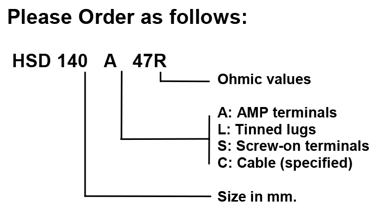 HSD / HSF, 220 ° C'lik bir çalışma sıcaklığına kadar UL tarafından tanınan bir silikon kauçukla doldurulmuş bir soğutucuya yerleştirilmiş mika elemanlarındaki kablo rezistörleridir. Dengeleme dirençleri için idealdirler. HSD tiplerinde terminalleri soğutucuya yukarı doğru (dikey) sahiptir. HSF'nin terminalleri soğutucuya paraleldir. Nominal gücü, monte edilmiş olan soğutucu sıcaklığına bağlıdır.