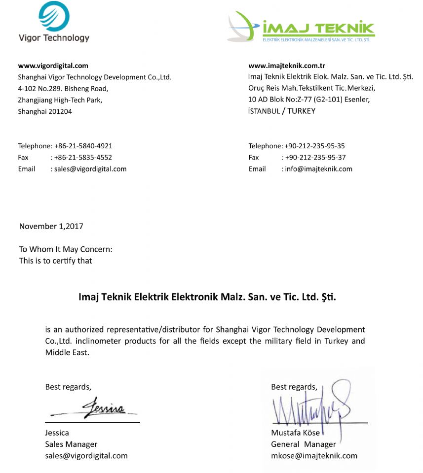 2001 yılında kurulan Vigor Technology Development Co, Ltd tutum, pozisyon ve oryantasyon ölçümü yapan ilk profesyonel üreticilerden biridir. Türkiye Distribütörlüğünü İmaj Teknik olarak üstlenmekteyiz.